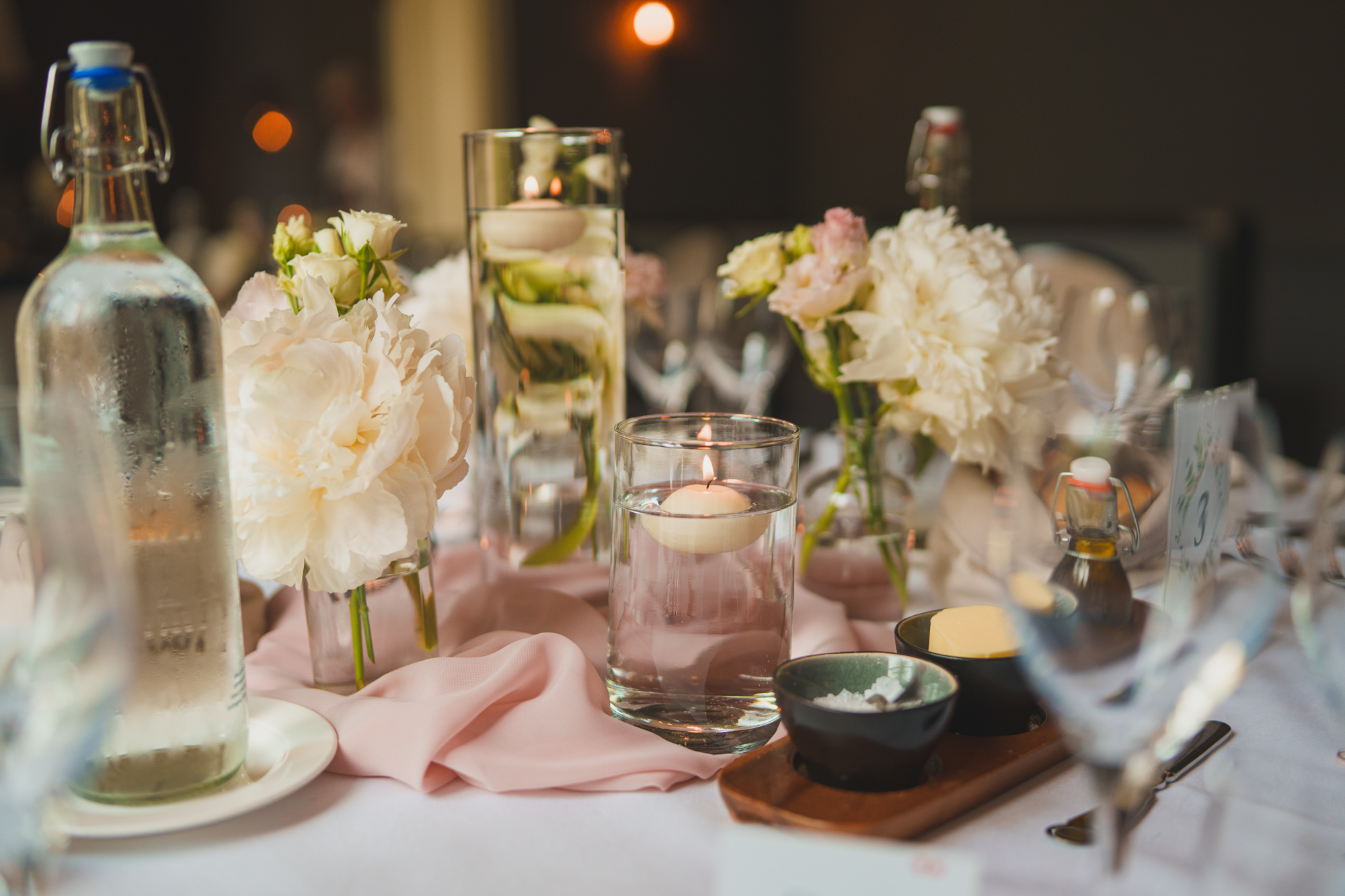 Na de reportage was de dinerzaal al volledig klaargezet en ingericht met de prachtige styling. Het 3-gangen diner werd uitgeserveerd en ik had een lekkere crewmaaltijd. Het bruidspaar had gevraagd om een same day edit, dus tijdens het eten bewerkte ik alvast wat foto’s zodat die op de DJ-booth konden komen tijdens het feest.